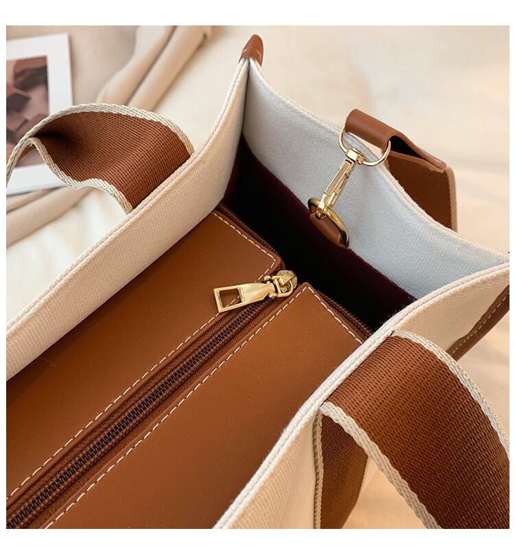 2Wayキャンバスバッグは、優れた機能性とおしゃれさを兼ね備えたアイテムです。ショルダーバッグとしてもハンドバッグとしても使用可能な2Way設計で、様々なシーンに対応します。ブラウンのカラーはコーディネートしやすく、どんなファッションにも合わせやすいのが魅力です。
