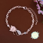 ラブリー キャットペンダント レディース オパールラインストーン バングル ブレスレット チェーン ジュエリー チャームブレスレット T240610155530_06