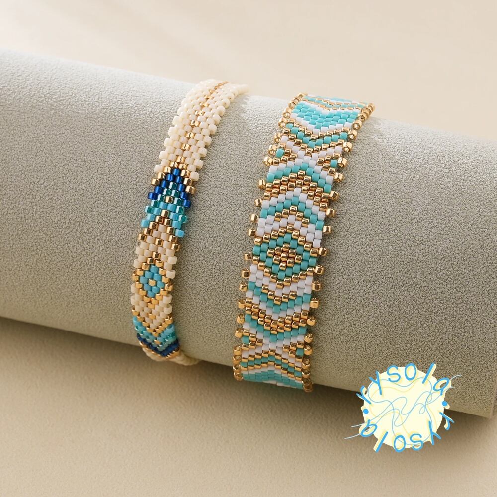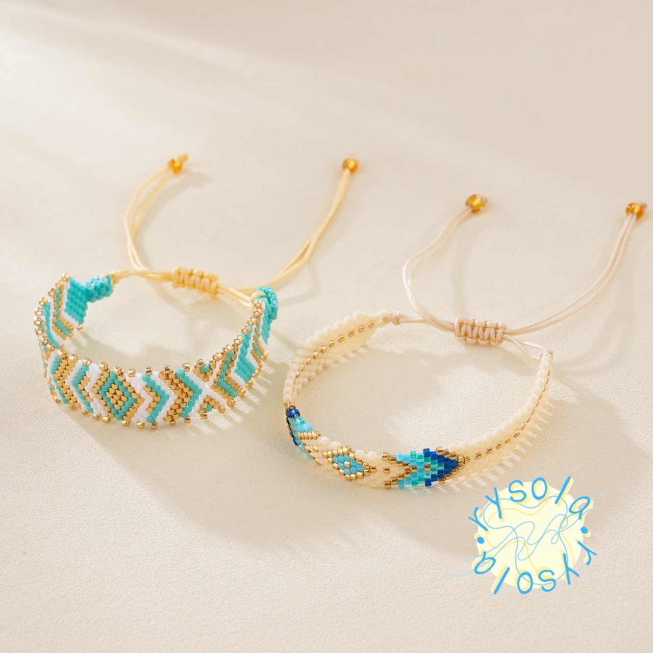 ボヘミアンスタイル エスニックスタイル レディースブレスレット シードビーズ 手描き T240610155648_02