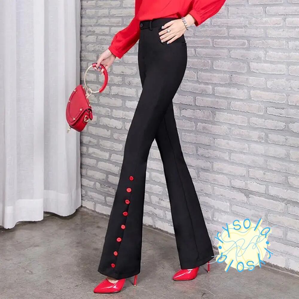 ハイウエスト 伸縮性 レディースストレートフレアパンツ 単色 ボタン ジッパー ポケット カジュアル スリム ファッション 夏 T240612101509_02