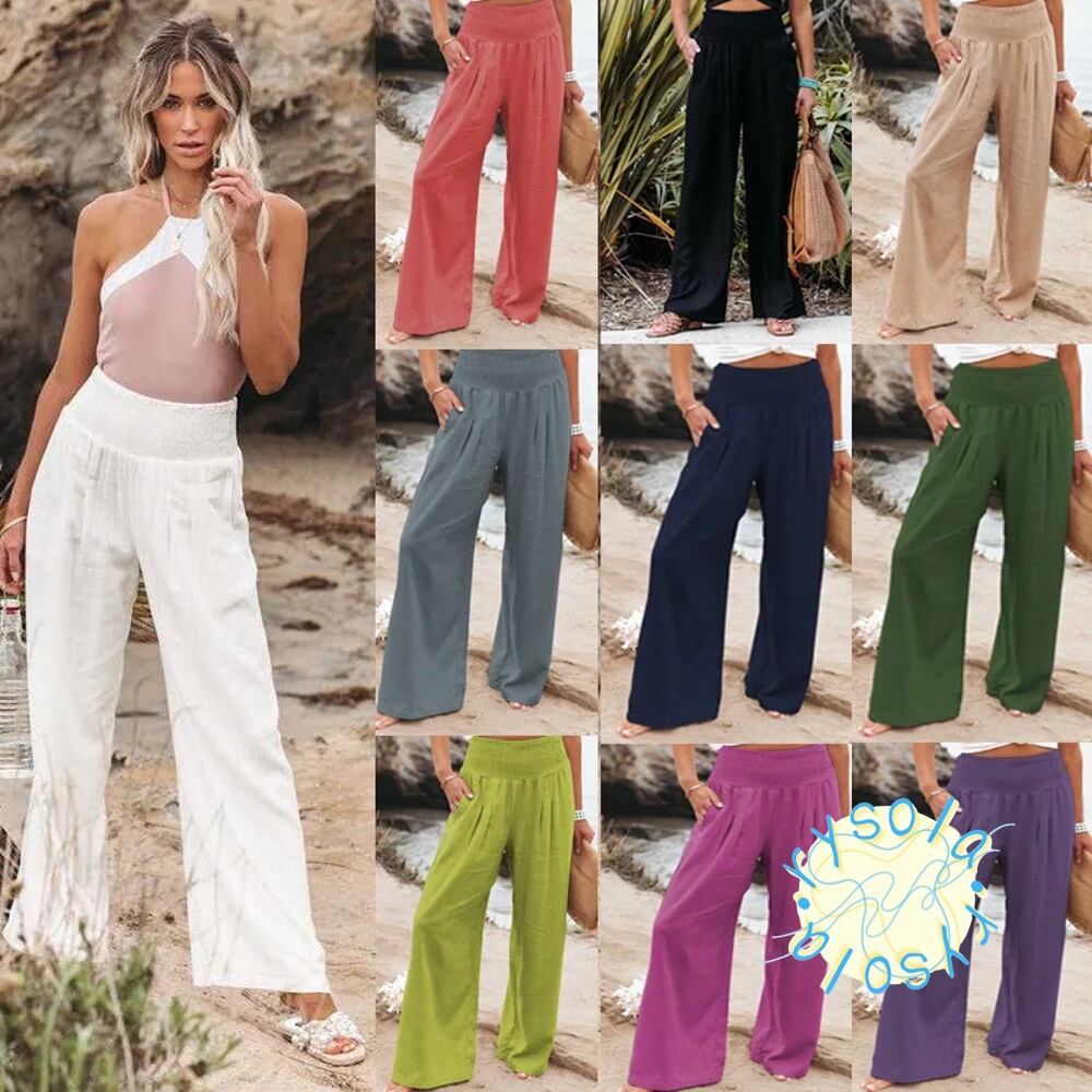 夏 ワイドレッグリネン ウエストバンド付き コットンパンツ 伸縮性 バギー カジュアル 春 T240612101536_05
