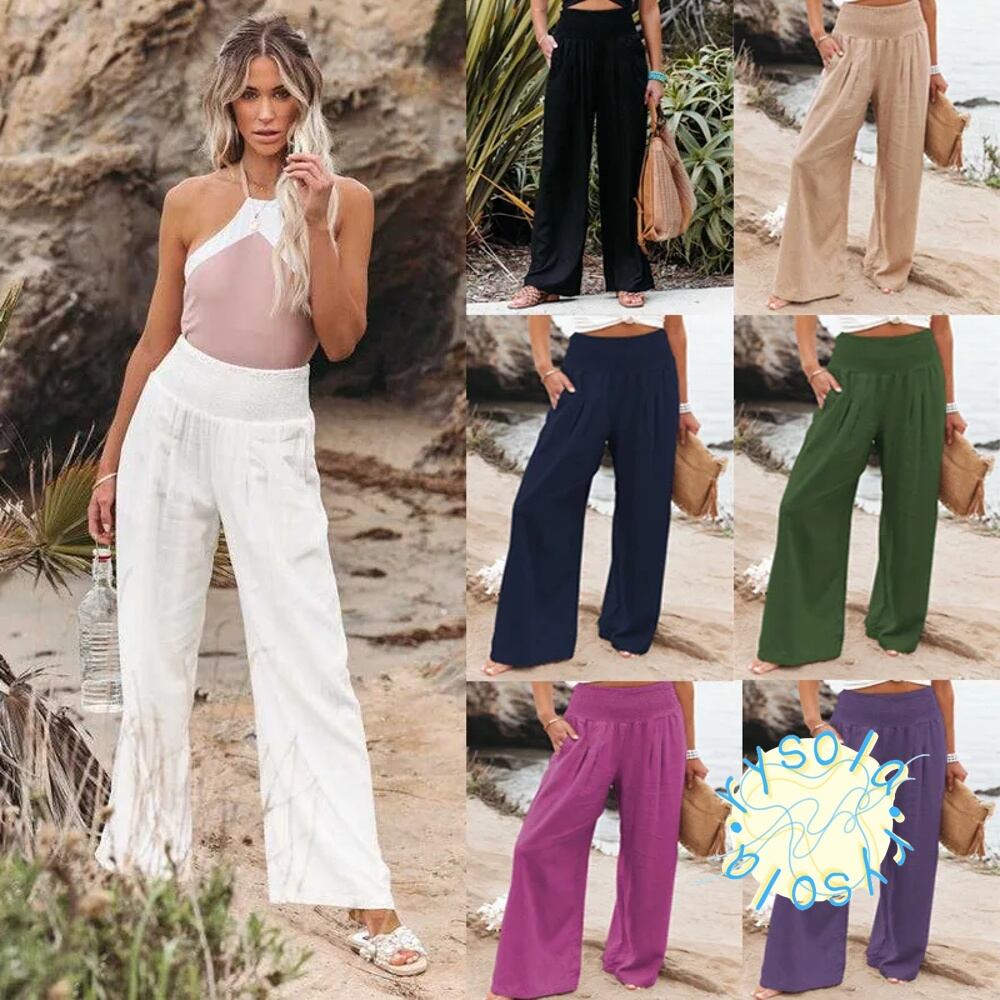 夏 ワイドレッグリネン ウエストバンド付き コットンパンツ 伸縮性 バギー カジュアル 春 T240612101536_07