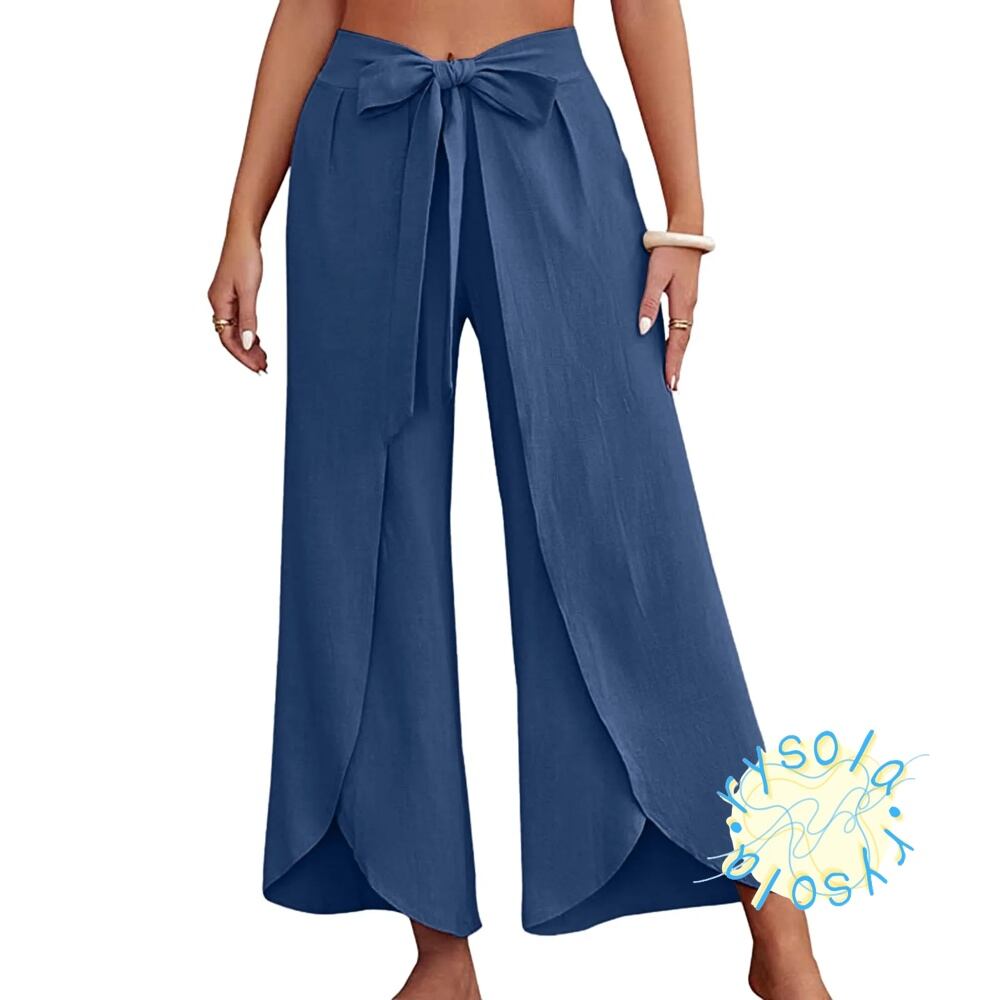 レースアップ リネンドレス ビーチパラッツォパンツ ビジネスフレアワイドレッグパンツ 夏 T240612101637_02
