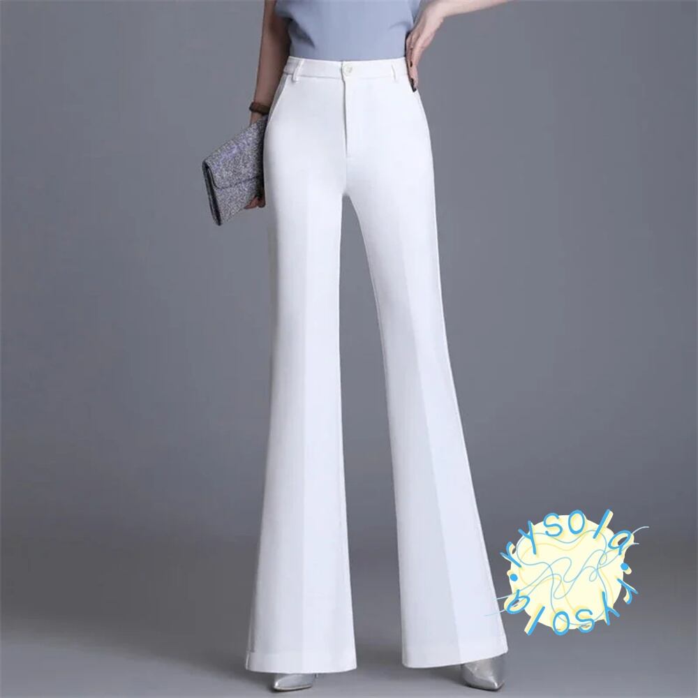 フレアパンツ ハイウエスト 通気性 クラシック スリム オフィス 夏 コレクション T240612101658_01