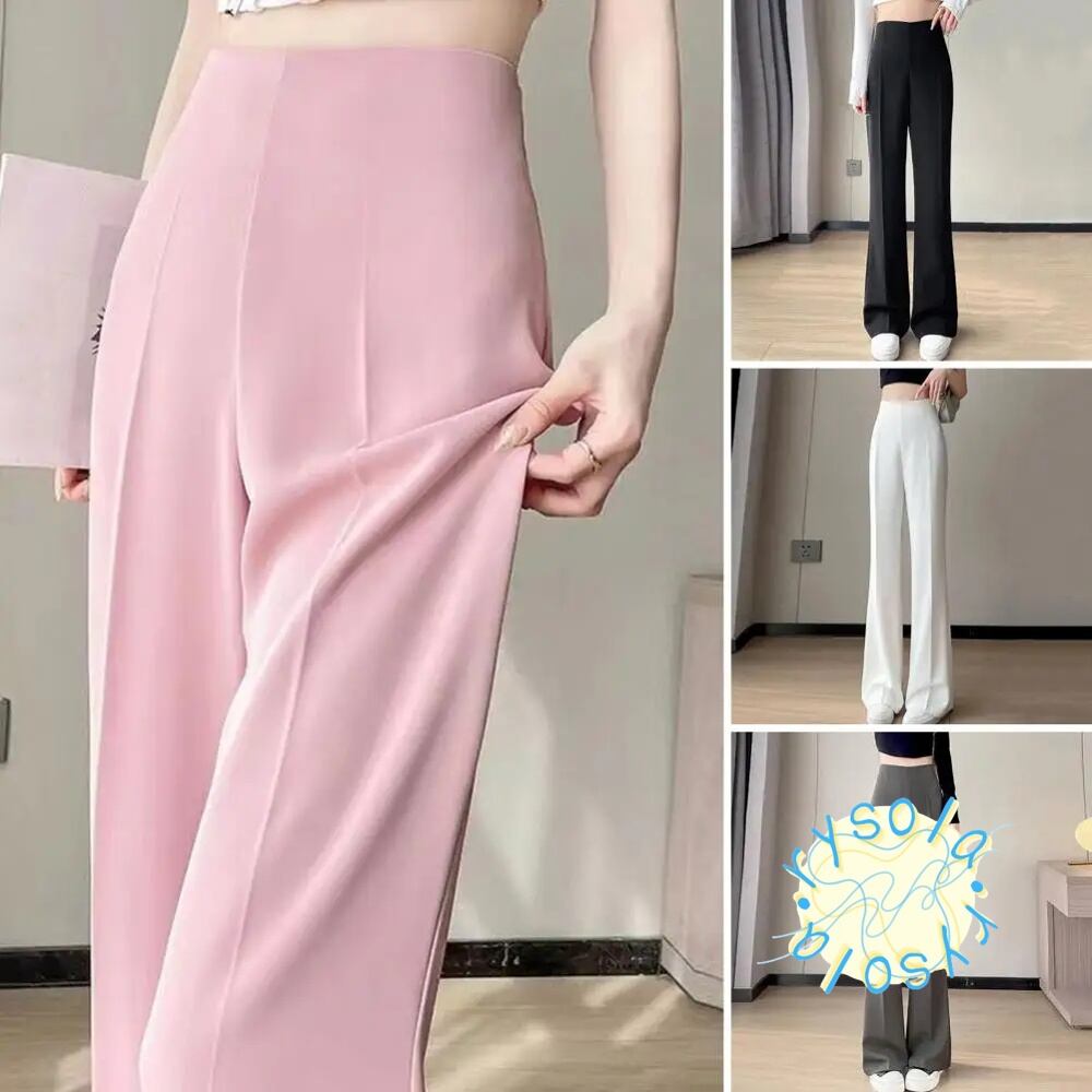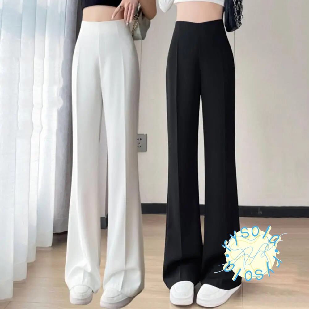 スーツパンツ ワークウェア 夏 ハイウエストパンツ ストレート ワイドレッグ ロング 無地 スリット T240612101825_02