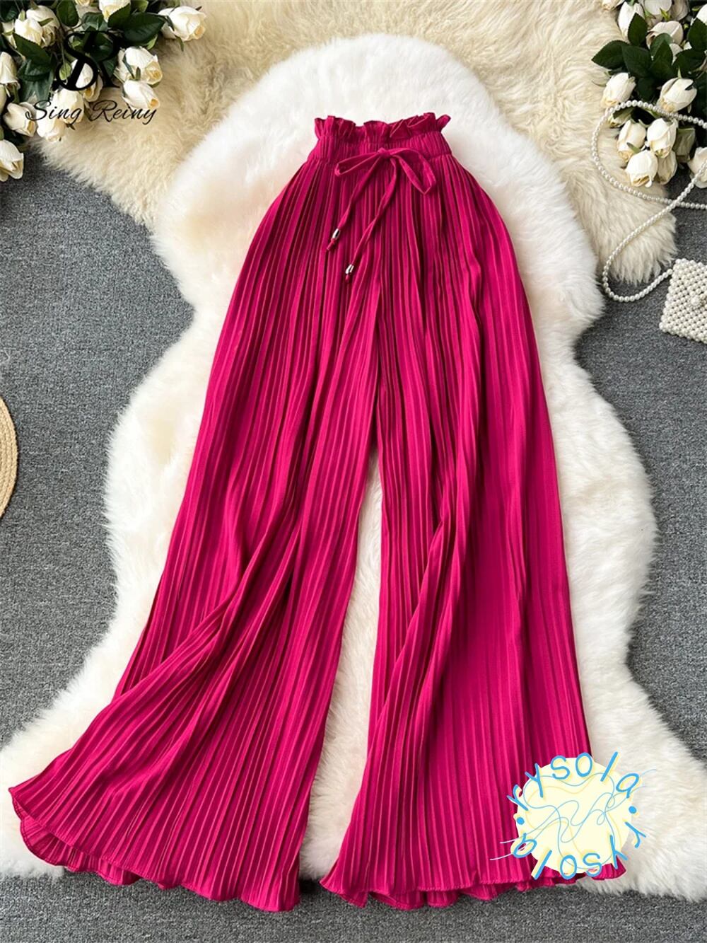 カジュアルパンツ ハイウエスト ドレープ ワイドレッグパンツ ソリッドロングプリーツパンツ 夏 T240612101834_06