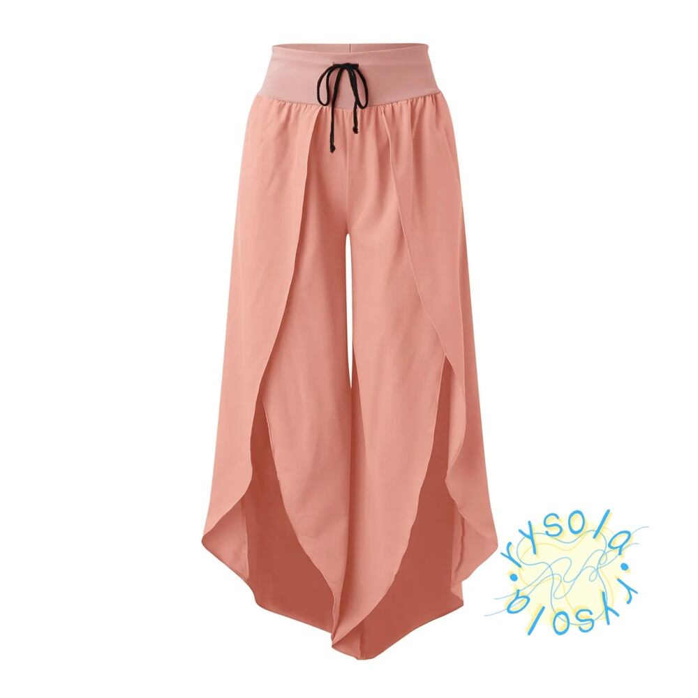 フレアパラッツォパンツ フリル付きワイドレッグ サイドスリット ルーズフィット カジュアル 夏服 T240612102214_01