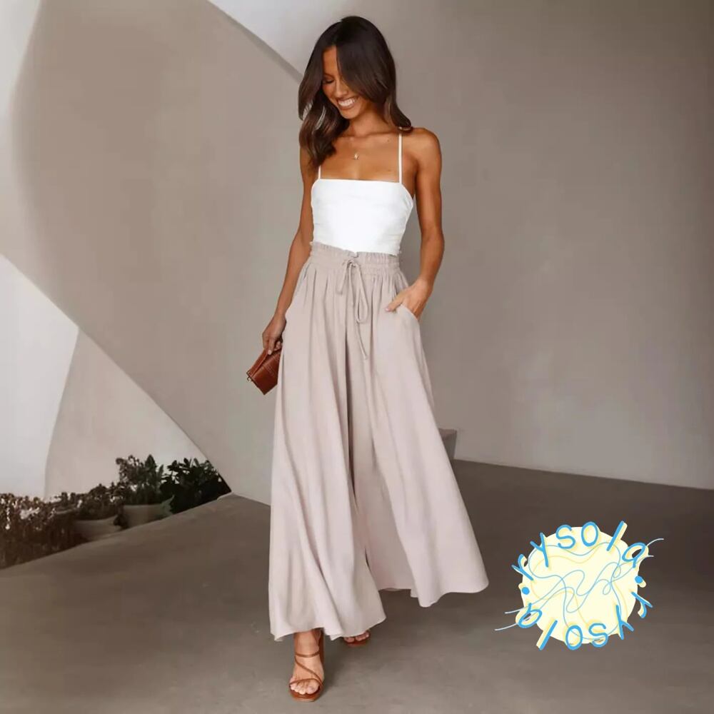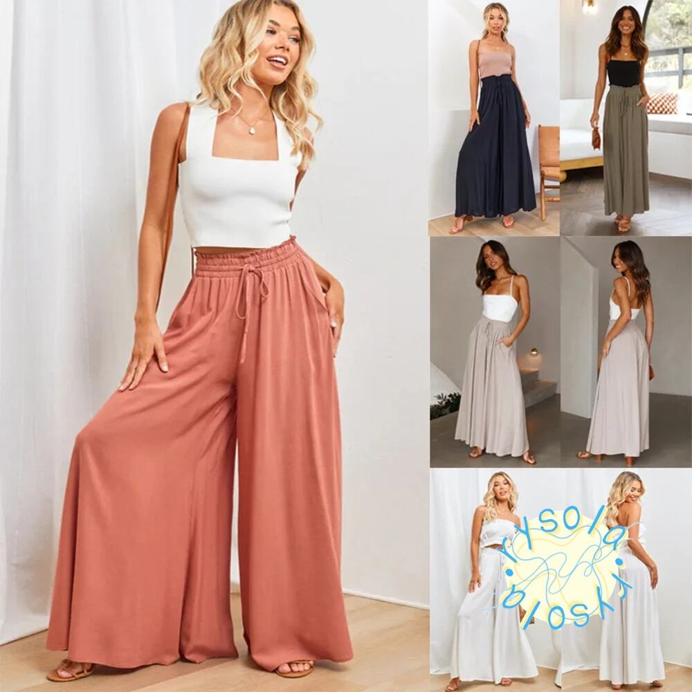 ハイウエストロングスカート 伸縮性ベルト 春夏コレクション ワイドレッグパンツ T240612102241_06