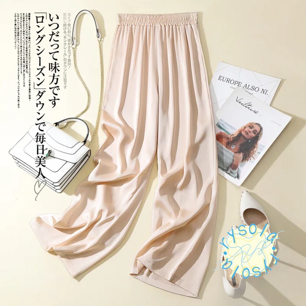 サテンストレートレッグパンツ ハイウエスト トリプルシルクパンツ ワイドレッグ ドレープ 夏 T240612102406_10