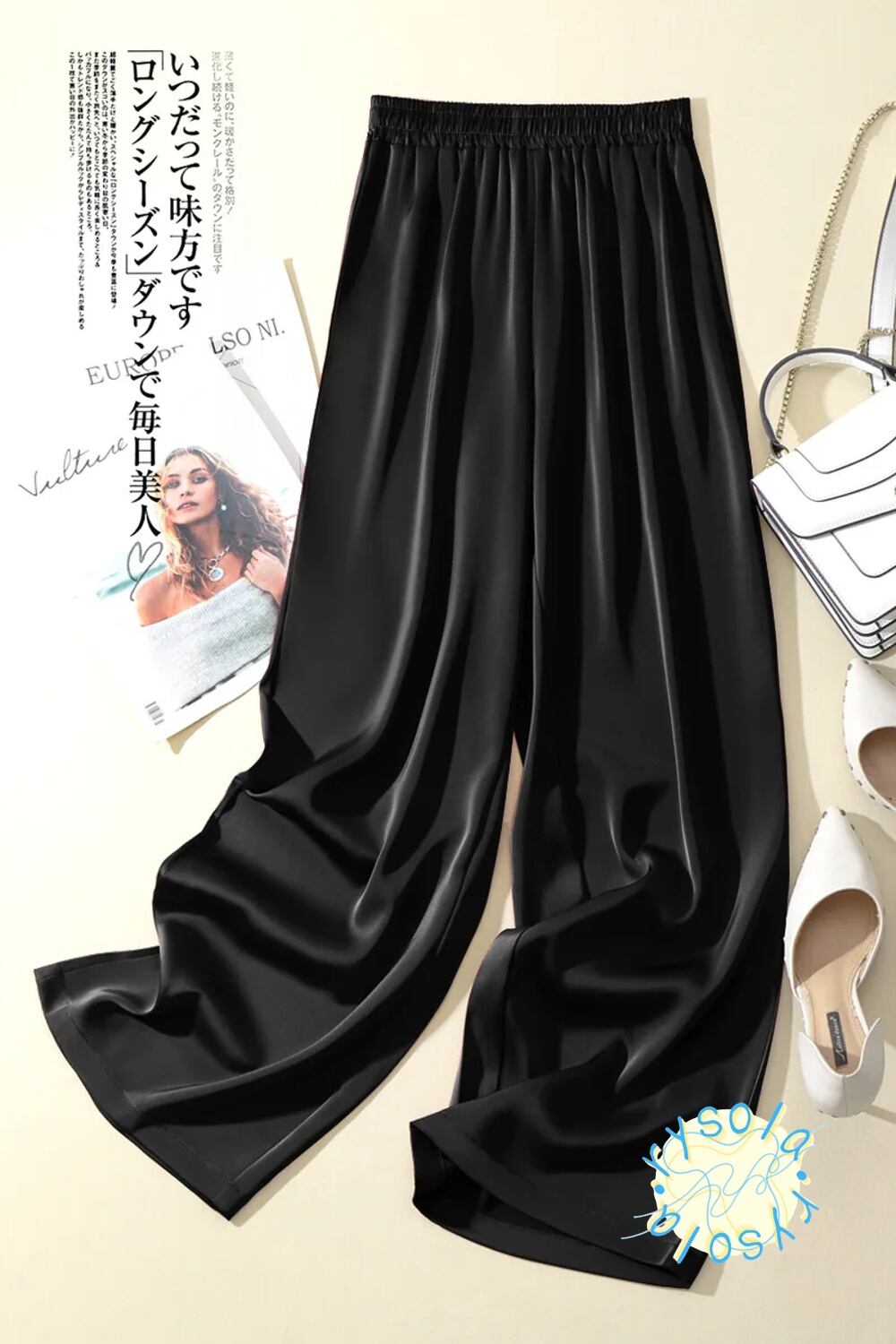サテンストレートレッグパンツ ハイウエスト トリプルシルクパンツ ワイドレッグ ドレープ 夏 T240612102406_17