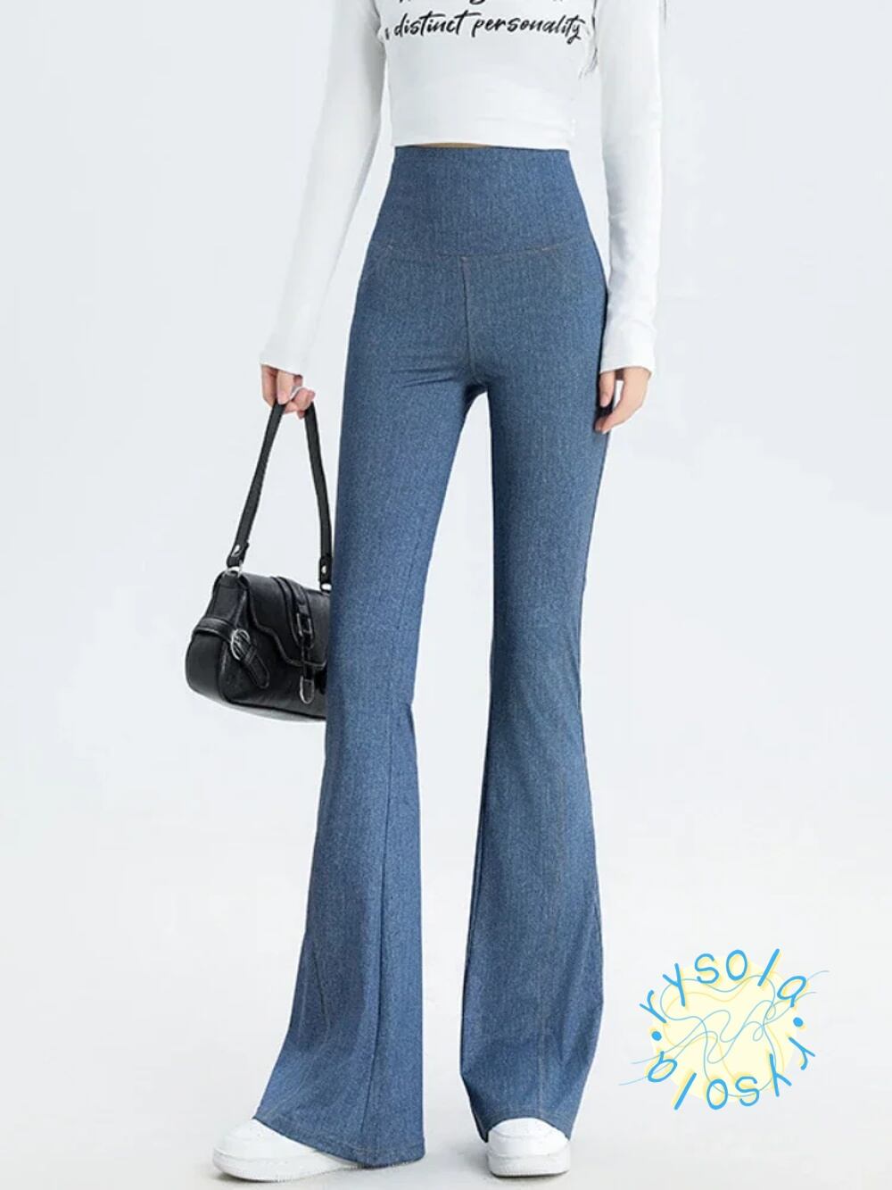 ハイウエストデニムパンツ マイクロファイバー フィットネス バインダー ストレッチ スポーツ ヨガ カジュアル 夏 T240612102516_02