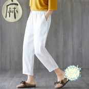 伸縮性 キャンディーカラー 高品質 春 夏 パンツ 綿 リネン 無地 ウエスト ソフト M T240612102608_02