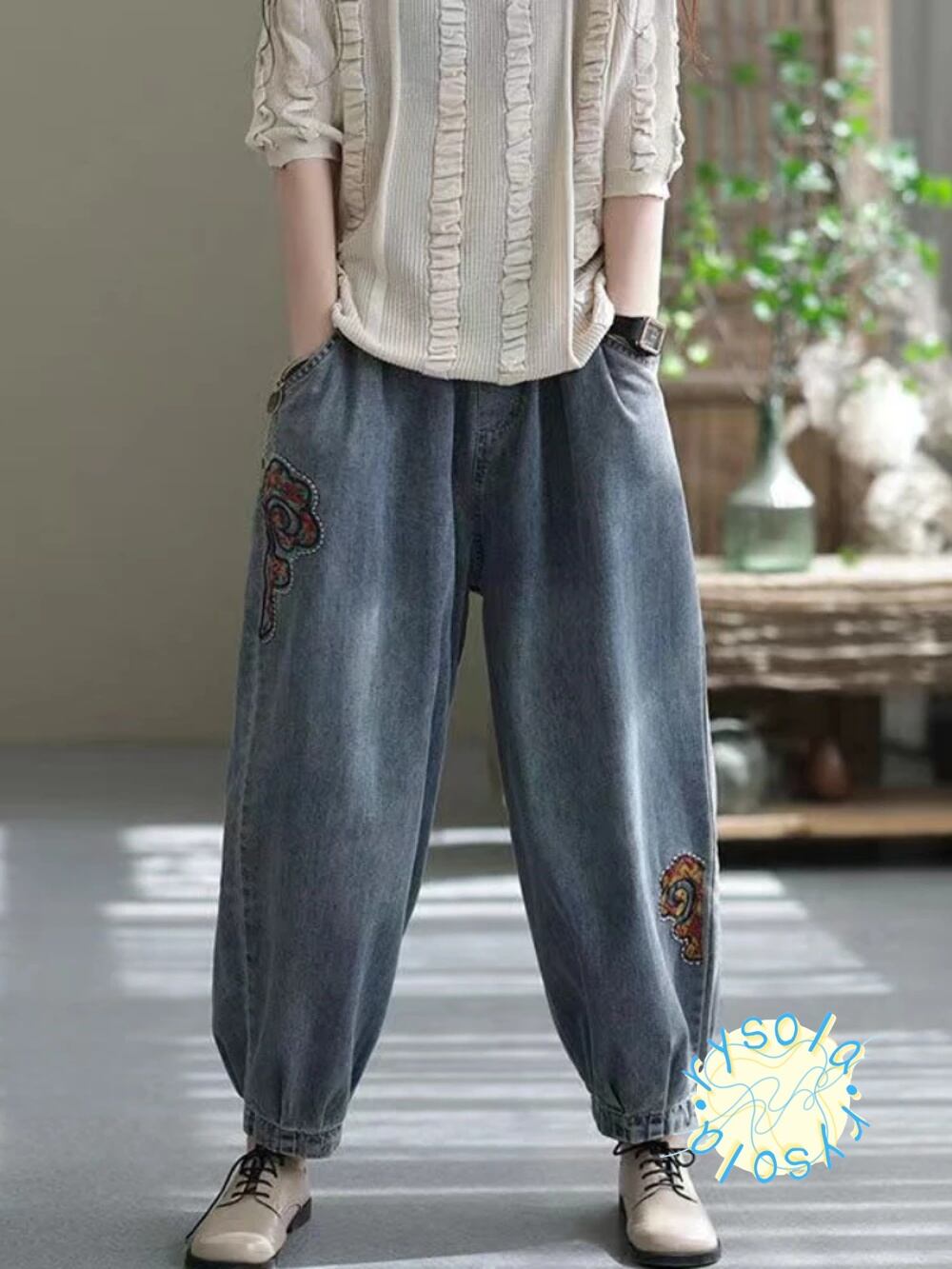 伸縮性 ウエストジーンズ ハーレムパンツ プラス 服 ファッション 夏 春 T240612102740_01