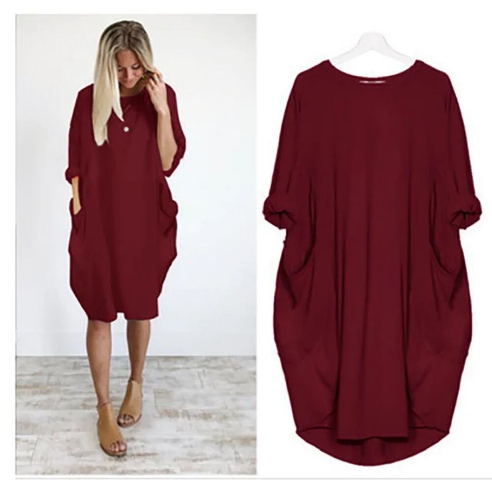レディース ワンピース ポケット付き 長袖トップス ラウンドネック Tシャツ 単色 夏 服 T240624151544_04