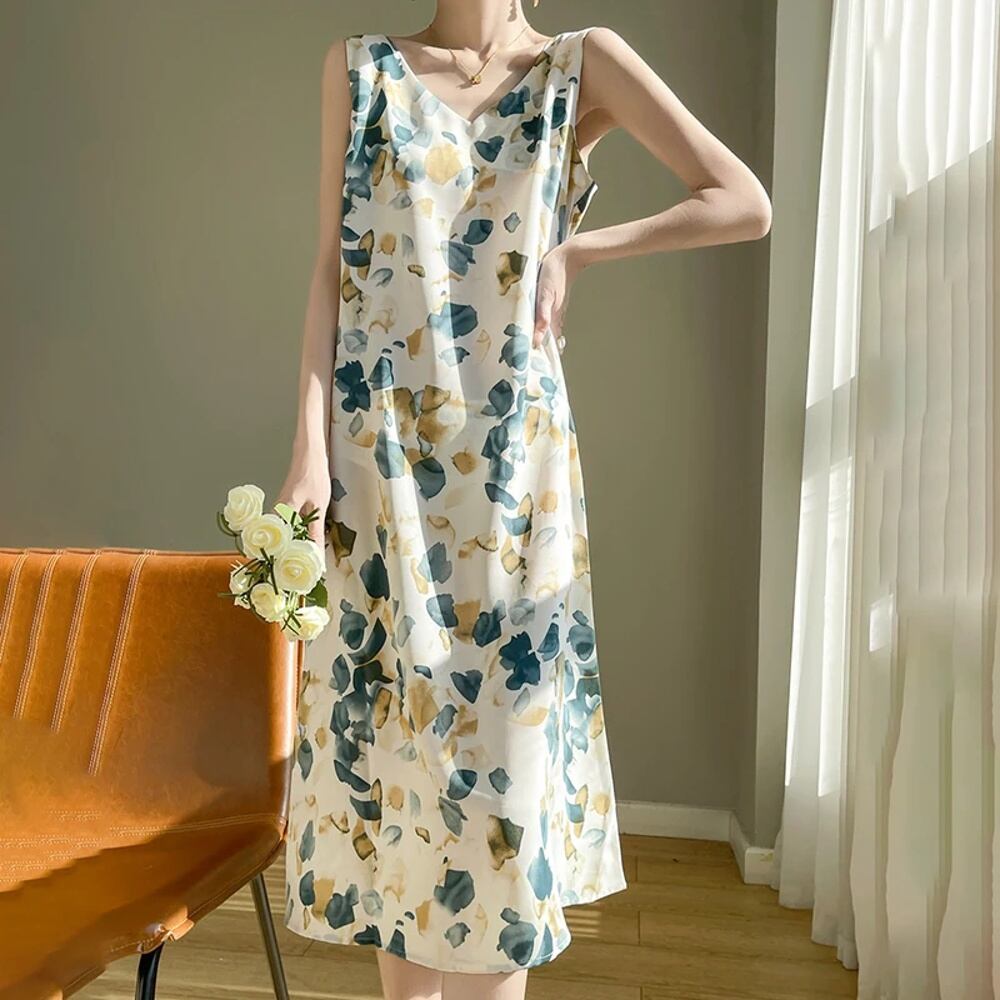 スカート フレンチプリント ロングセクション レディース フリーシートサスペンダーワンピース サテン カジュアル 春 夏 T240624151938_06