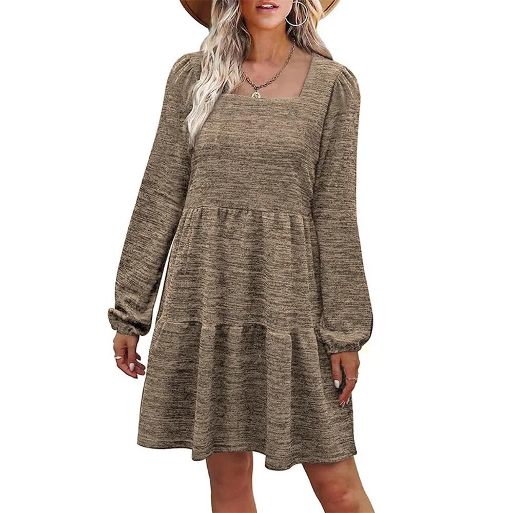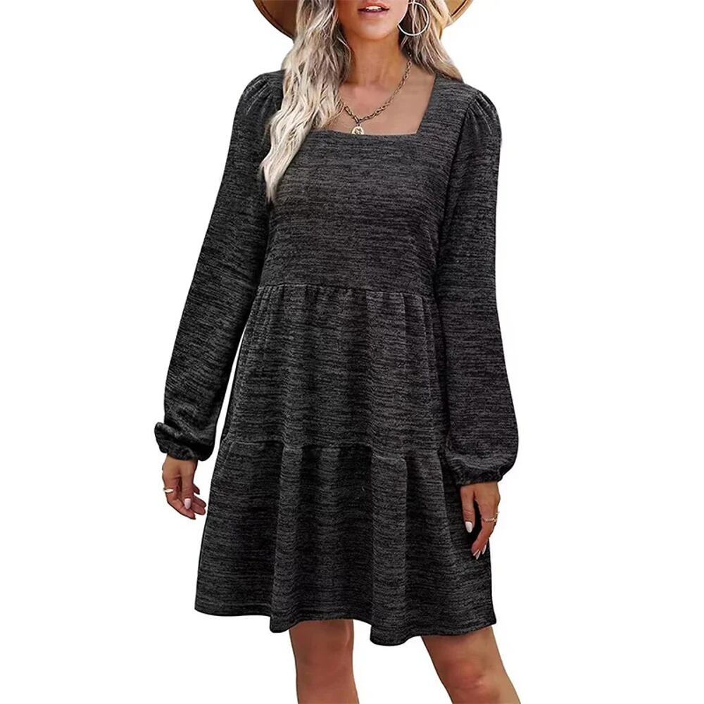長袖プルオーバーワンピース 単色ストリートワンピース スクエアネック レディース 快適 カジュアル レイヤードパッチワーク 秋 T240902131641_04