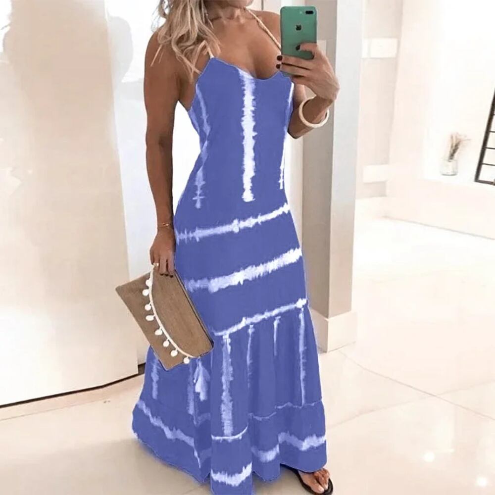 アメリカンスタイル ストライプパターン ロングスリミングワンピース ホルターネック ヨーロッパ ノースリーブ 秋 コレクション T240902131833_02
