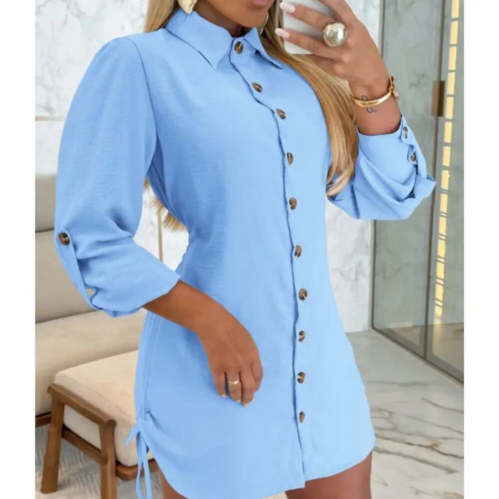 レディース Vネックボタンアップワンピース 半袖コットンリネン 両面ドローストリング カジュアル ルーズフィット ファッショナブル 秋 新品 T240902132729_07