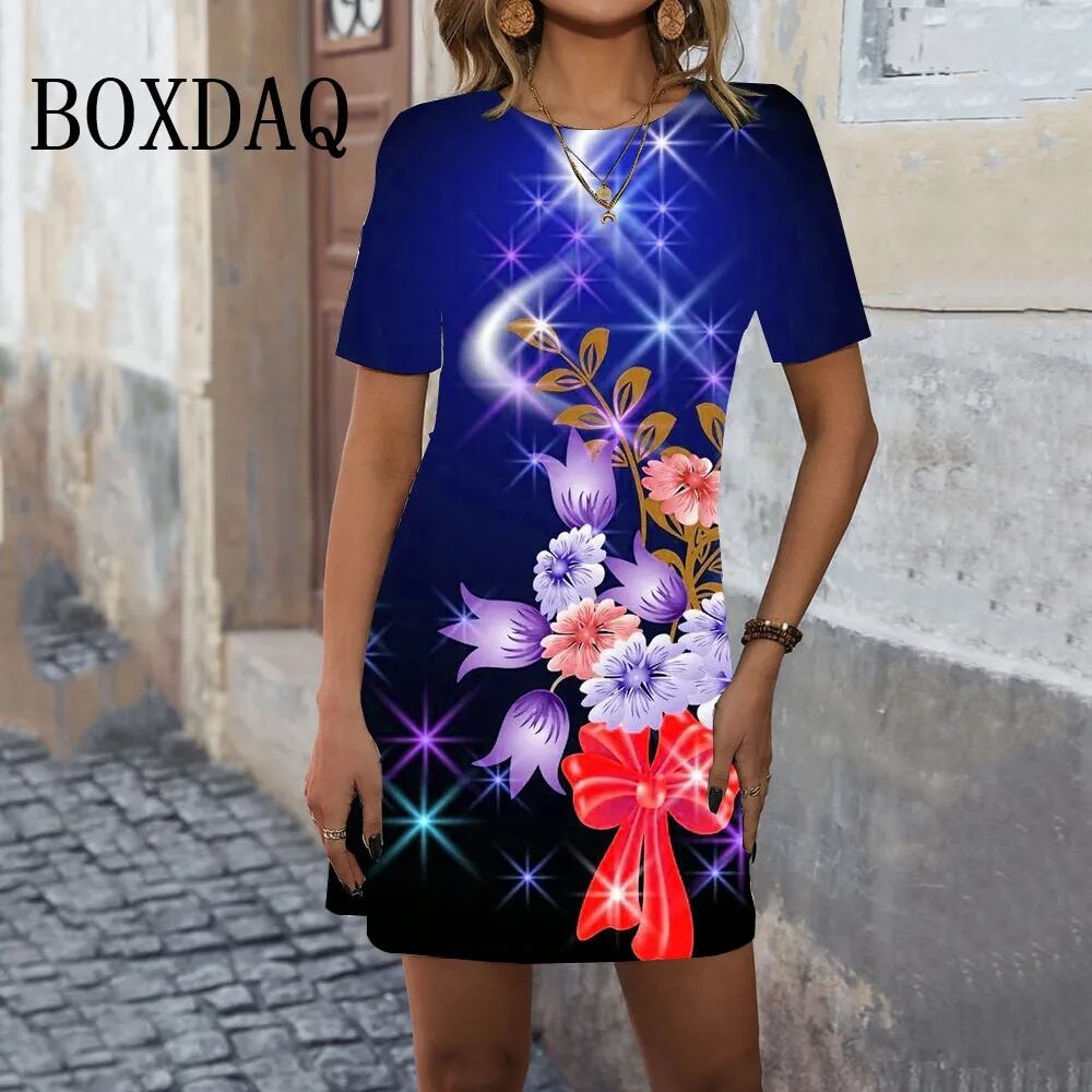 レディース 花柄 プルオーバーワンピース ワンピース ストリートファッション 光沢 半袖 夏 T240902132821_02