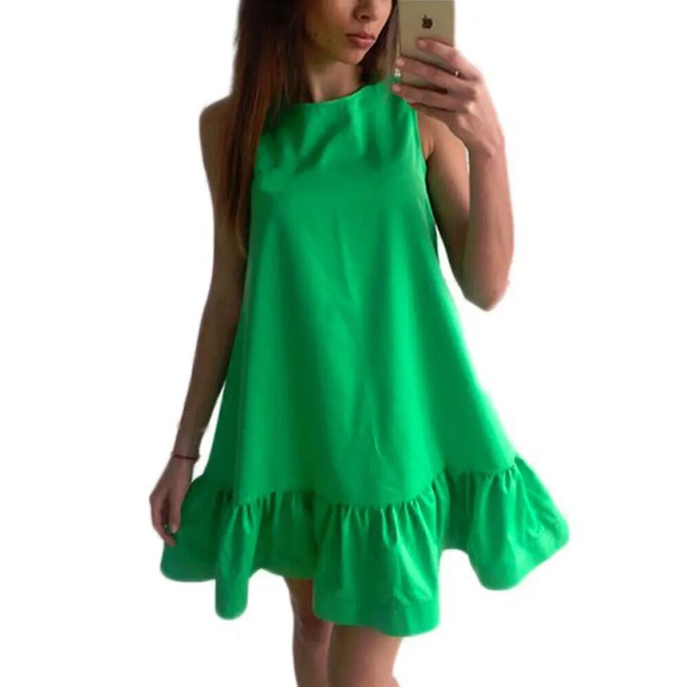 ビーチウェア レディース フリルミニワンピース ルーズフィット 無地 シフォン カジュアル トレンディ 夏 T240902132834_01