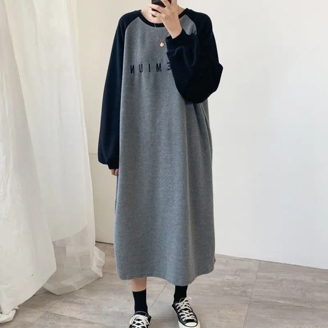 ルーズパッチワーク長袖プルオーバー レディース 黒 ワンピース 単色 春 秋 T240902132846_02