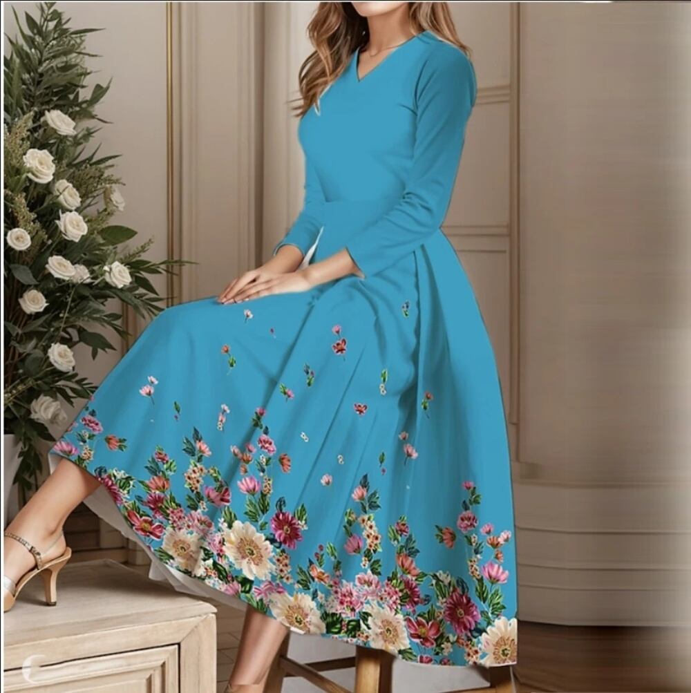 花柄 ラウンドカラー ロングワンピース Vネック 秋冬ファッション レディース 長袖 スタイル コレクション T240902133353_01