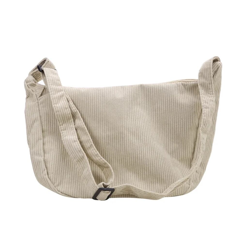レディース コーデュロイショルダーバッグ レディース ファッション ジッパー付きハンドバッグ ミニマリストバッグ クロスオーバー 生地 モノクロ T240905104000_01