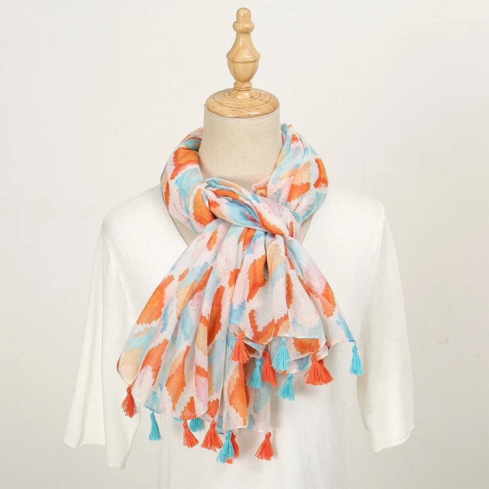スカーフ デザイナーブランド レディース 綿 プリント ショール ネックヘッドバンド タッセル T240905104707_17