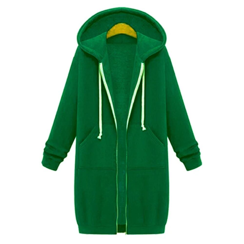 レディース ジッパー付きフード付きスウェットシャツ ロングチュニック カジュアルジャケット 長袖コート ポケット 単色 秋 新品 T240906152635_04