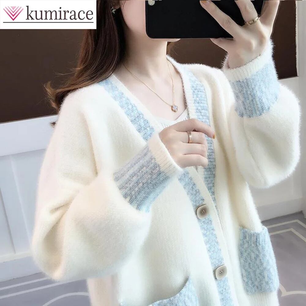 ミドル丈ニットコート レディース ミンクフリースカーディガン 冬服 厚手 ルーズセーター 新品 春 秋 T240906152724_03