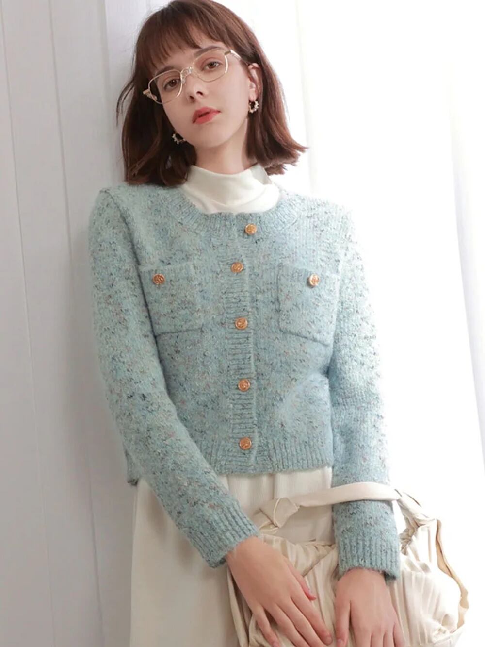 レディース 長袖ラウンドネックニットカーディガン レディース セーター カジュアルトップ ヴィンテージコート 秋 T240906153246_02